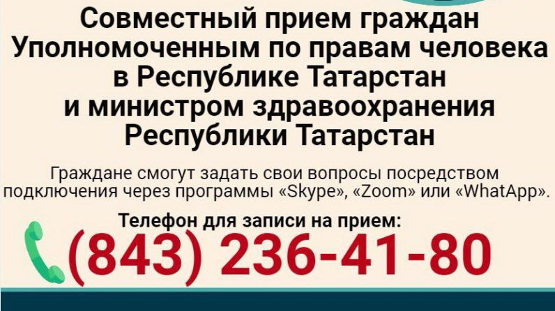 2020 елның 16 июнендә Татарстан Республикасында Кеше хокуклары буенча вәкаләтле вәкилнең һәм Татарстан Республикасы Сәламәтлек саклау министрының видеоэлемтә режимында гражданнарны бергәләп кабул итүе була.