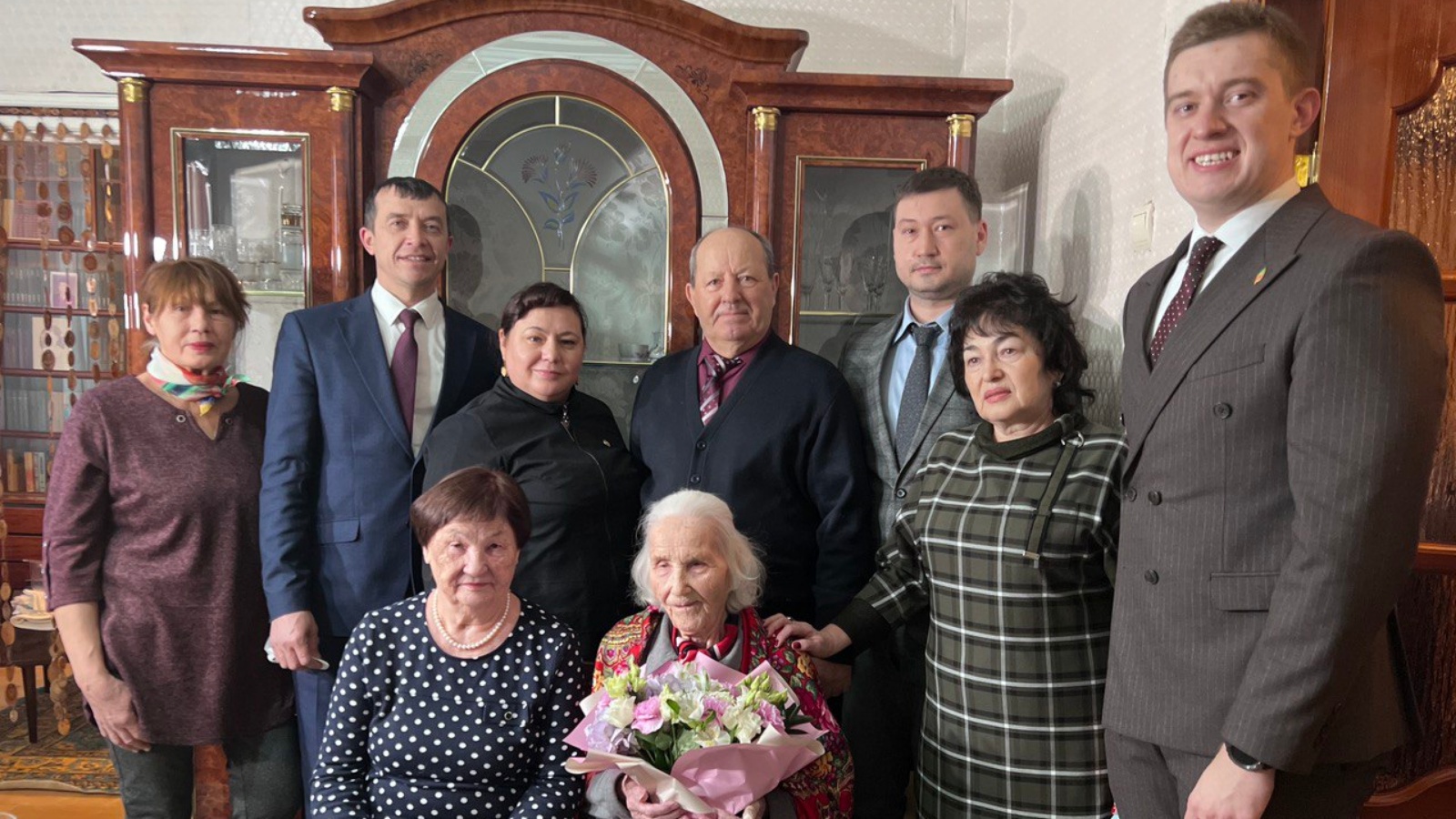 Ветераннар советыннан Һадия Сәлях кызын аның рәисе Владимир Яшанин котлады: «Сез күбрәккә лаек. Сезгә сәламәтлек телим. Озак яшәгез!».