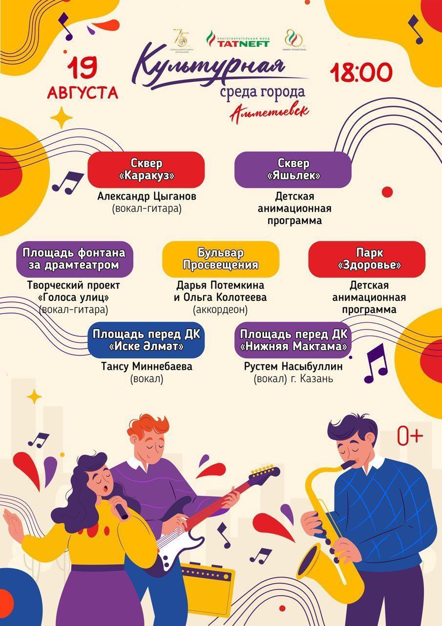 Анда шәһәр халкы һәм кунаклары музыкаль һәм күңел ачу программасыннан ләззәт ала алачак