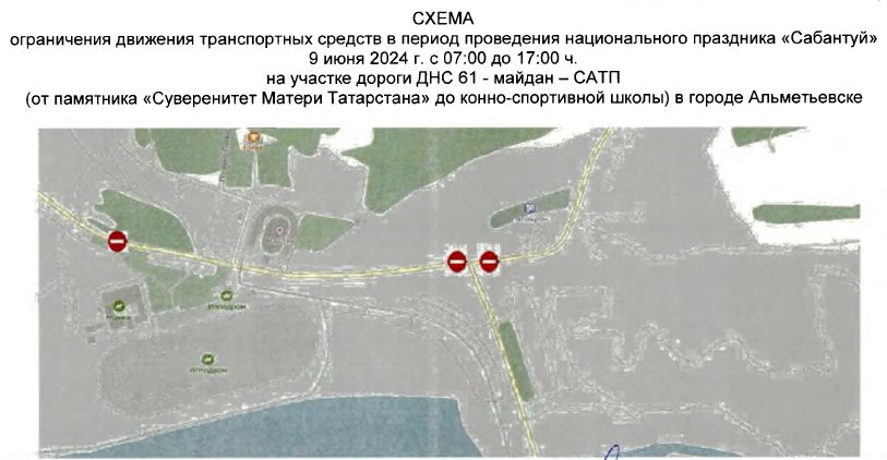 «Сабантуй» милли бәйрәме кысаларында бәйрәм чаралары уздыруга бәйле рәвештә 2024 елның 9 июнендә 07:00 сәгатьтән 17:00 сәгатькә кадәр Әлмәт шәһәрендә 61 ДНС - мәйдән — САТП юлы участогында («Татарстан анасы суверенитеты» һәйкәленнән ат-слорт мәктәбенә кадәр) «Сабантуй» бәйрәмен уздыру вакытында транспорт чаралары хәрәкәте ябылачак.
