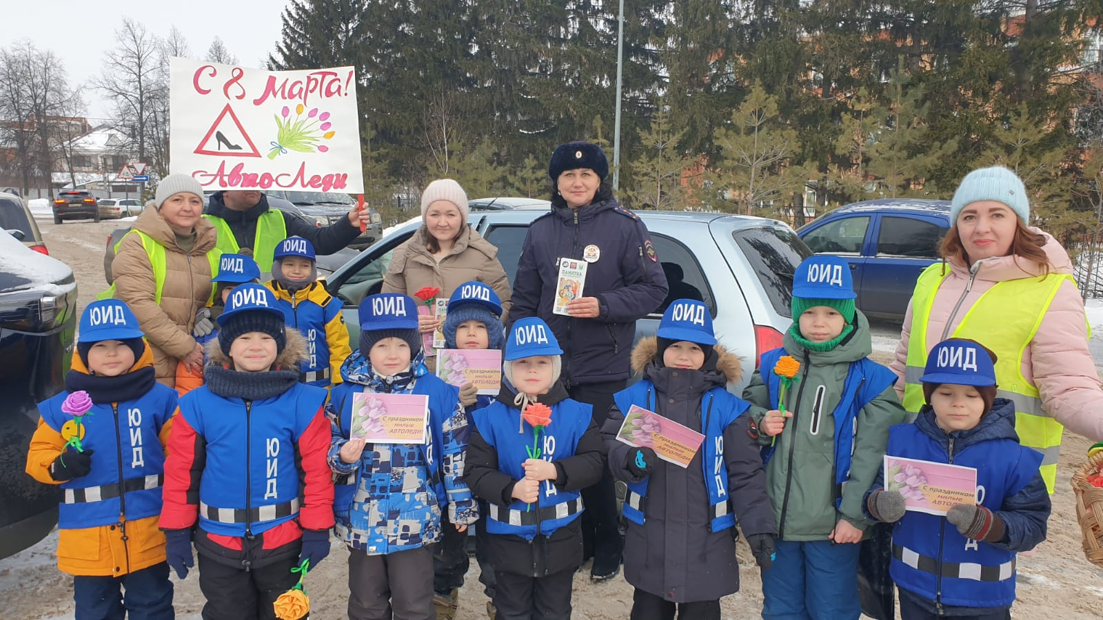 Балалар язгы кәефне күтәрү, юл хәрәкәте кагыйдәләрен үтәүне, куркынычсыз юлларны һәм игътибарлы җәяүлеләр теләделәр, чәчәкләр һәм белешмәләр бүләк иттеләр.