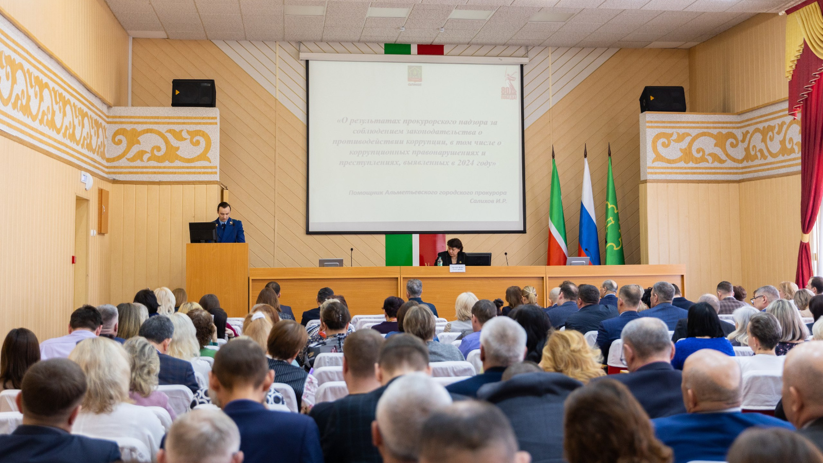 Көн тәртибендәге төп мәсьәләләрнең берсе коррупциягә каршы көрәш турындагы законнар үтәлешенә прокурор күзәтчелеге нәтиҗәләре турындагы доклад булды. 2024 елда ачыкланган хокук бозулар һәм коррупция юнәлешендәге җинаятьләр турындагы мәгълүмат белән шәһәр прокуроры ярдәмчесе Илнар Салихов чыгыш ясады.