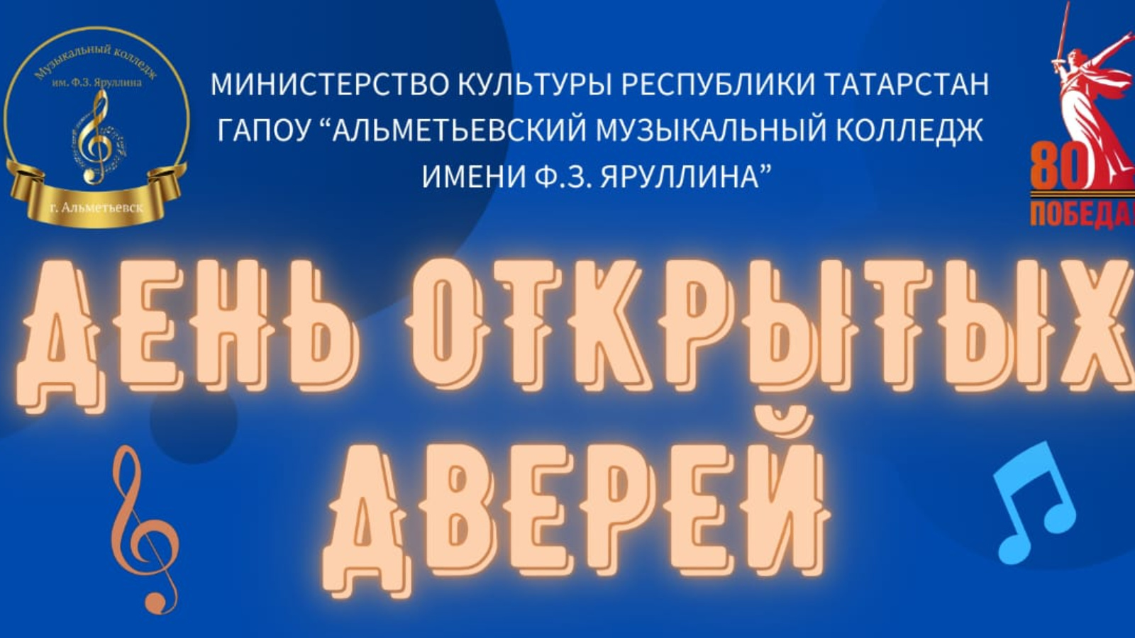 Ф. З. Яруллин исемендәге Әлмәт музыка көллияте үз тормышларын музыка, иҗат белән бәйләргә хыялланучыларны 13 апрель көнне 11.00 сәгатьтә Ачык ишекләр көненә чакыра!