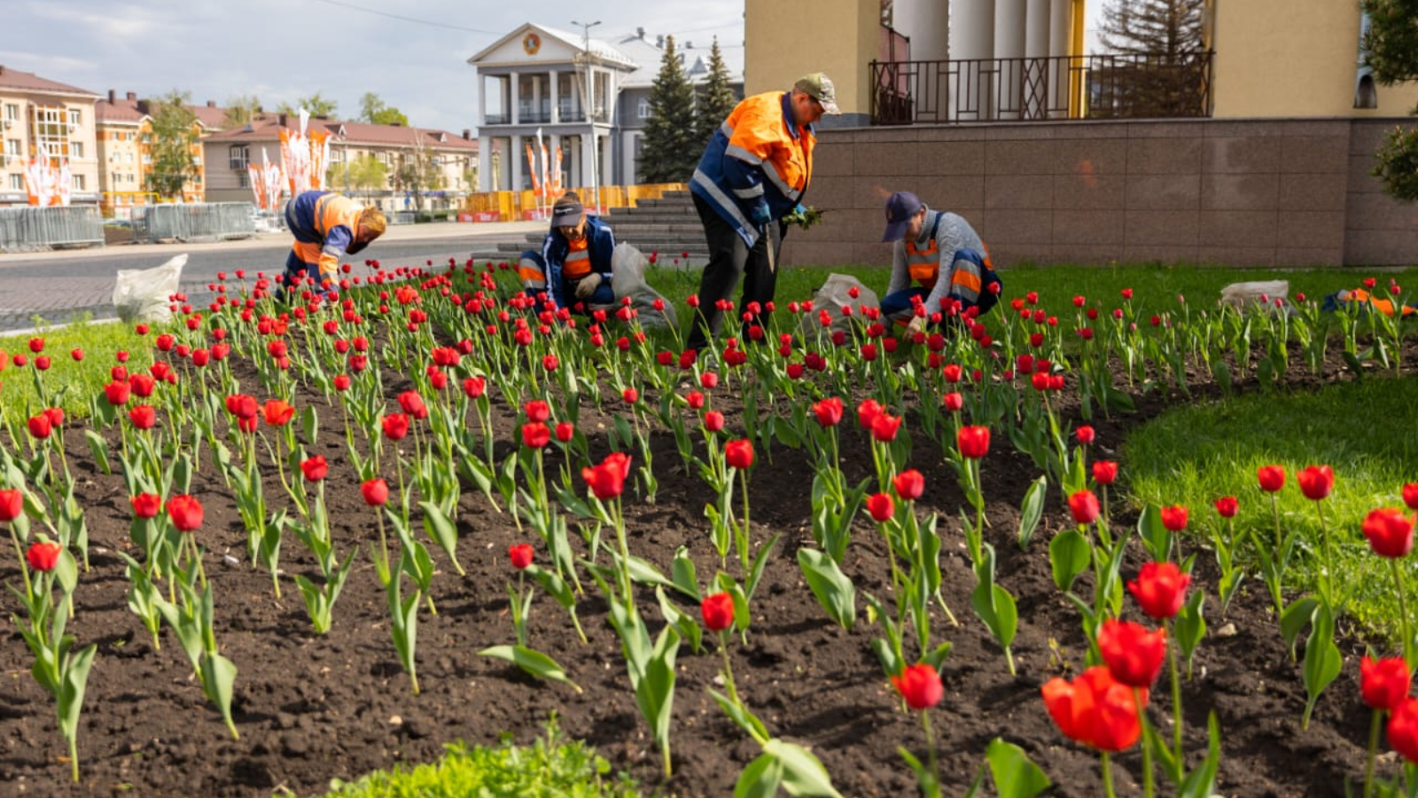 Чәчәкләрне Ленин мәйданына утырталар. Чәчәк түтәлләрен 5600 дән артык чәчәк бизәячәк - лалә чәчәге, петуния, бәрхет һәм цинерария. Чәчәк үсентеләрен утырту Җиңү көненә кадәр төгәлләнәчәк.