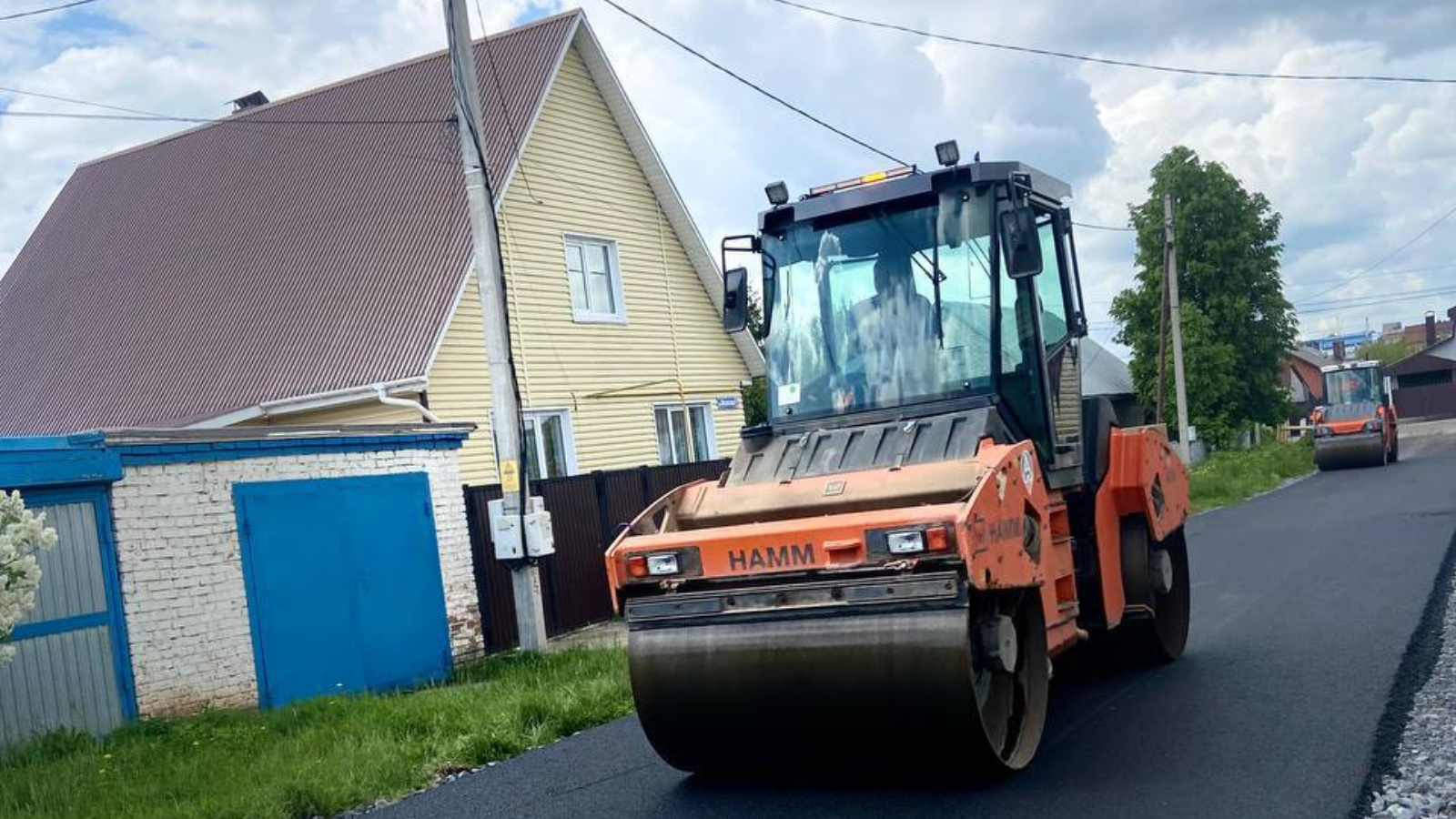 Фотосурәтләрдә-межевая урамына асфальт җәю. Юл кырыйларын ныгытасы гына калды, бу участокны ремонтлап бетерәсе генә калды.