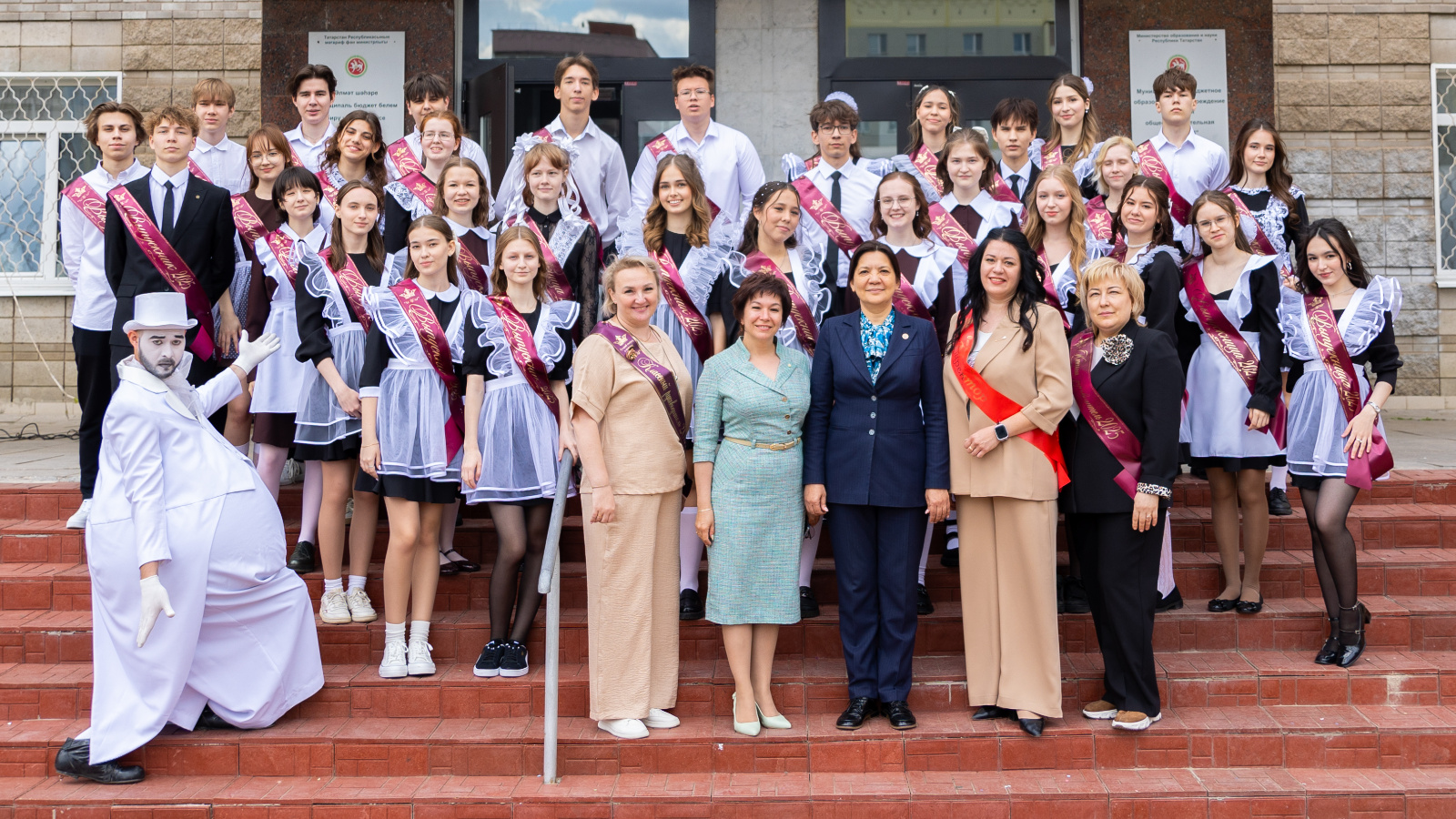Мәктәпне тәмамлаучыларга Гүзәл Хәбетдинова, район мәгариф идарәсе җитәкчесе Ирина Павловская, мәктәп директоры Олеся Ягъфәрова һәм сыйныф җитәкчеләре теләкләрен җиткерделәр.