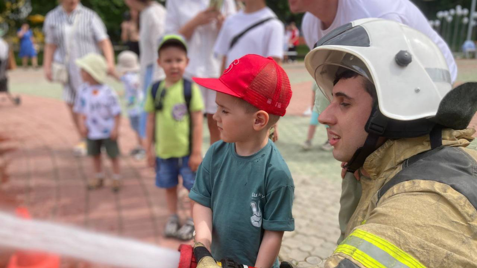Ә янгын сүндерүчеләр балаларга шланглардан чәчрәтеп,чын мәгънәсендә су күңел ачу оештырганнар!