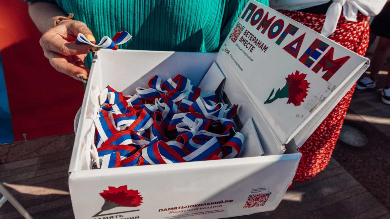 12:00 дән 15:00 гә кадәр «креатив Процесслар фабрикасы» яшьләр үзәге мәйданчыгында волонтерлар халыкны бәйрәм белән котлаячак һәм россия триколоры төсенә тасмалар тапшырачак. Акция кысаларында волонтерлар 450дән артык тасма таратачак.