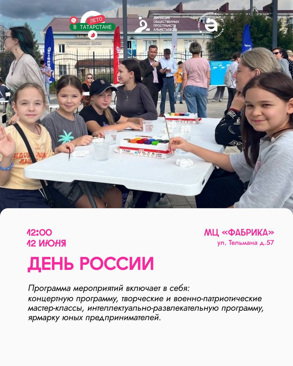 Концерт программасы, яшь эшмәкәрләр ярминкәсе һәм Россия көненә багышланган патриотик акцияләр
