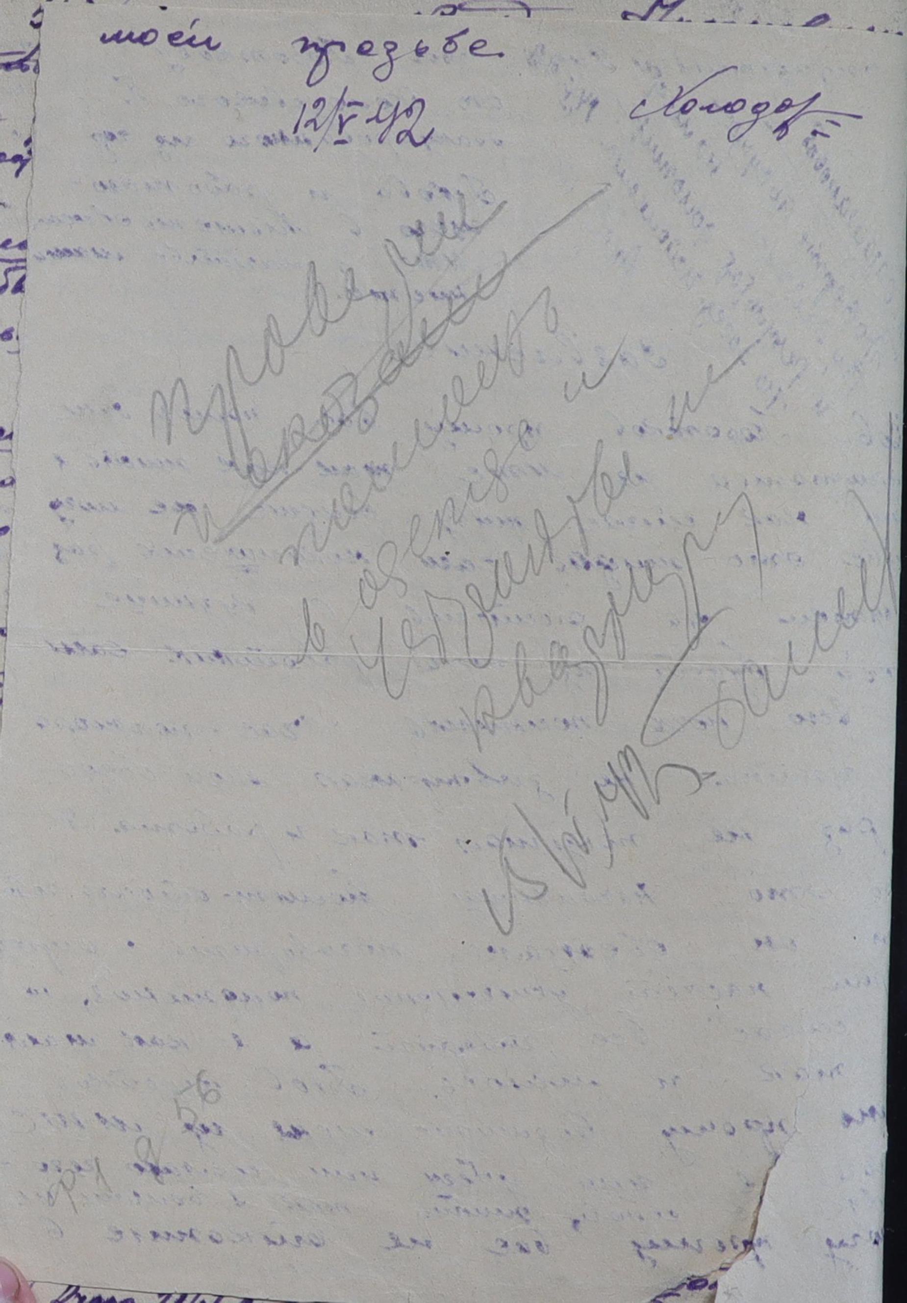 Псковтан Холодовский хакимияттән аның хәлен яхшыртуны сорый,даими ачлык турында яза, ул аны эвакуациядән качарга мәҗбүр итә йә «үзем белән берәр нәрсә эшләргә», йә «мин ничек маялдым, шулай маям, шулай яши алмыйм».