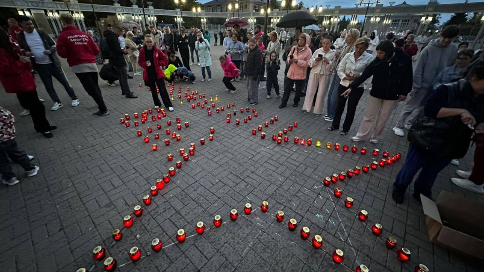 Хәтер һәм кайгы көне алдыннан «Мәңгелек ут» мемориаль комплексы янында әлмәтлеләр һәлак булганнарны искә алу өчен җыелды.