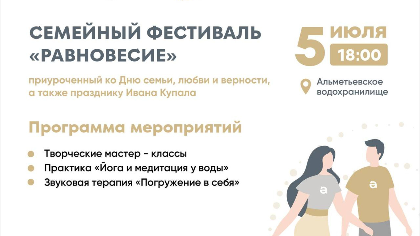 Инде иртәгә, 5 июльдә 18:00 сәгатьтә Әлмәт сусаклагычы территориясендә «Татарстанда җәй» проекты кысаларында «Тигезлек» гаилә фестивале узачак.