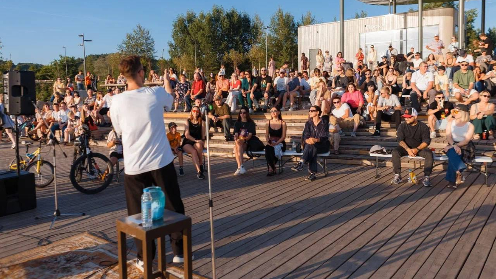 «Татарстанда җәй» проекты кысаларында Әлмәт шәһәр сусаклагычы яр буенда «STAND UP» фестивале узды, анда яхшы юмор сөючеләр җыелды.