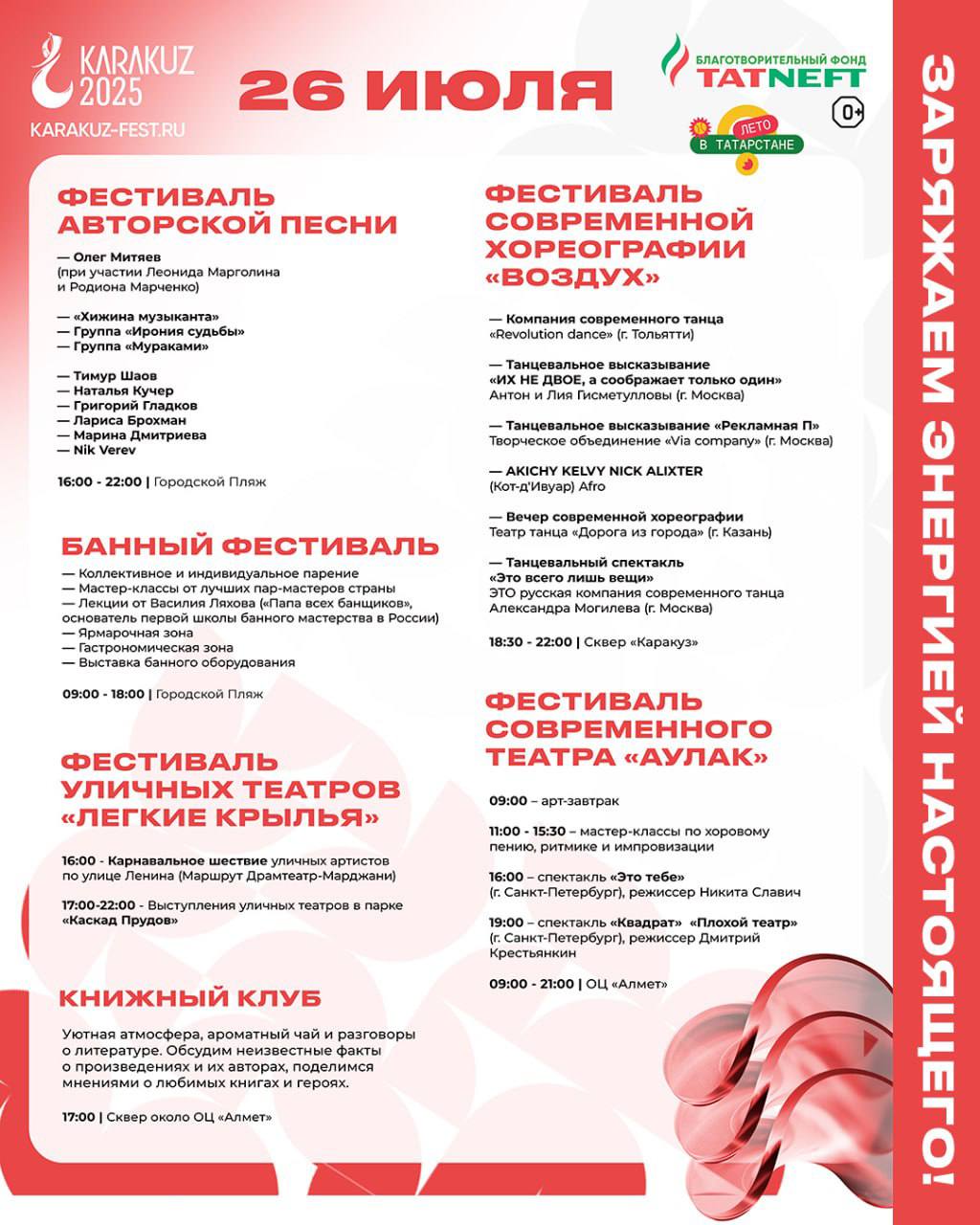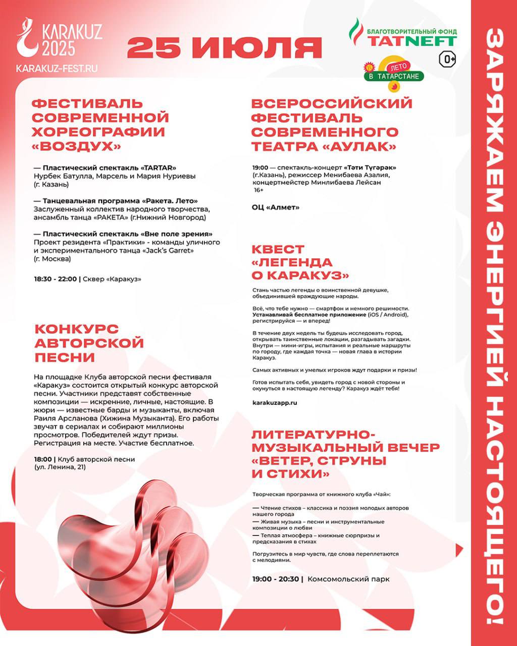 «Каракүз» фестивале дәвам итә. «Татарстанда җәй» проекты кысаларында 25 июльдән 27 июльгә кадәр Әлмәт Татарстанның бөтен көньяк-көнчыгышын җәлеп итү үзәгенә әвереләчәк.