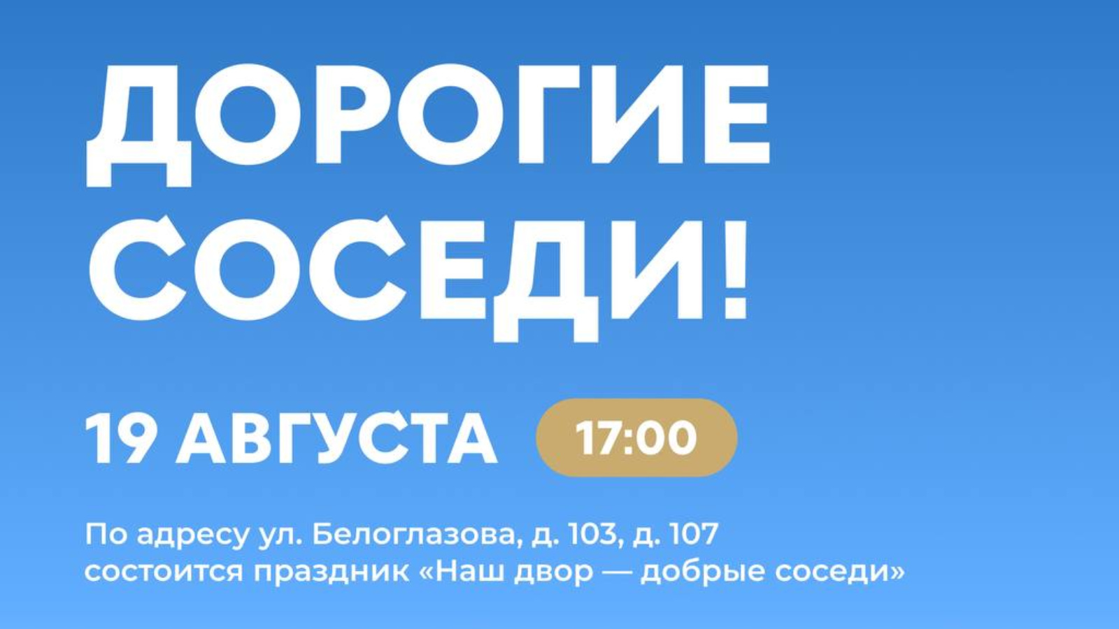 «Безнең ишегалды – яхшы күршеләр» бәйрәмнәре сериясен дәвам итәбез. Бүген Белоглазов урамы, 103, 107 адресы буенча урнашкан ишегалдында очрашабыз.
