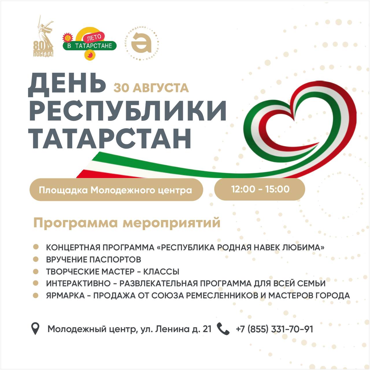 «Татарстанда җәй» проекты кысаларында шәһәр халкын һәм кунакларны бай программа көтә: концертлар, мастер-класслар, ярминкәләр һәм башкалар.
