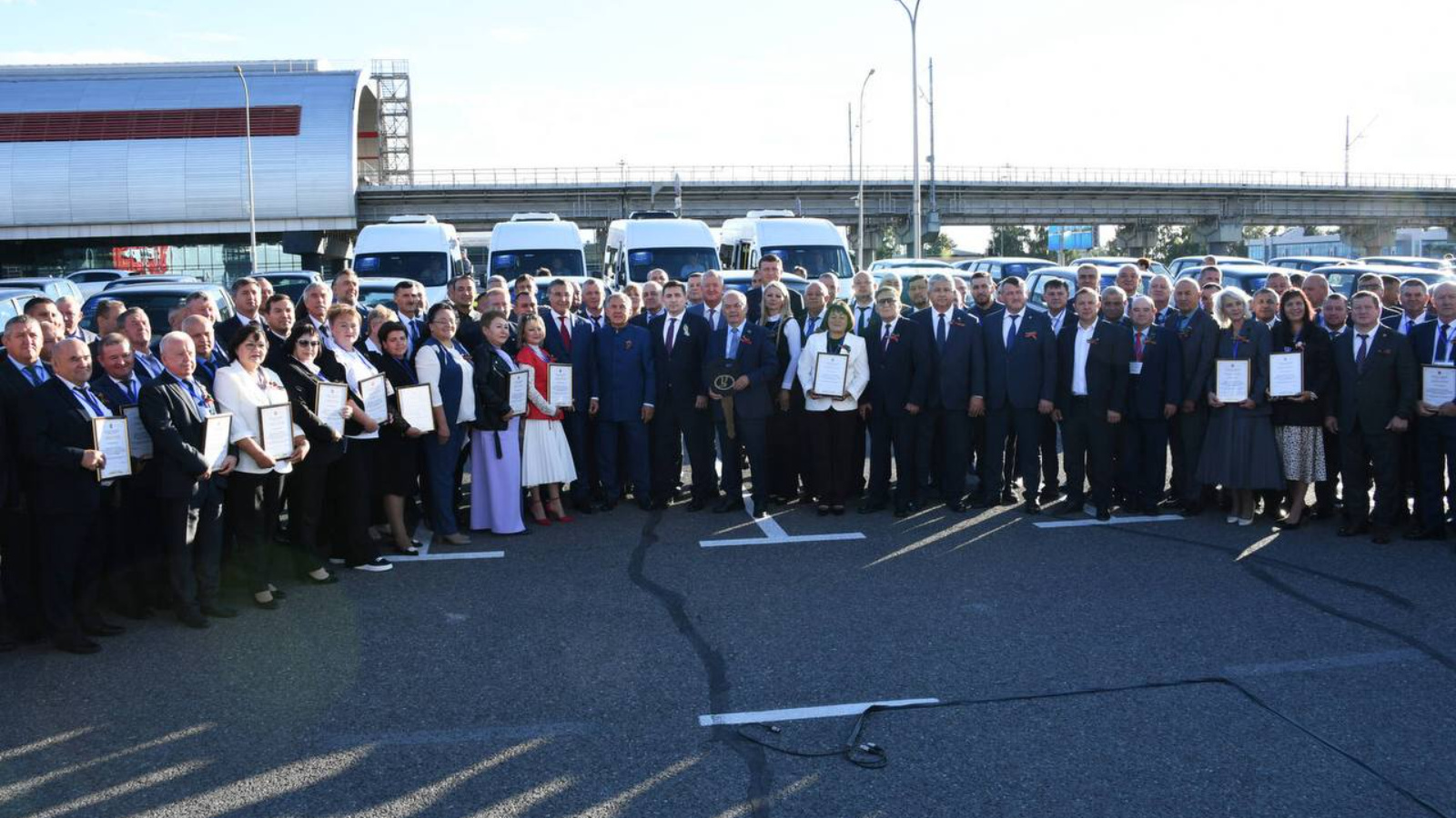 «Казан Экспо» Халыкара күргәзмә үзәге каршындагы мәйданда муниципаль берәмлекләр арасында республика смотр-конкурсында җиңүчеләргә автомобиль ачкычлары тапшыру тантанасы булды. Чара Республика көненә багышланган иде.