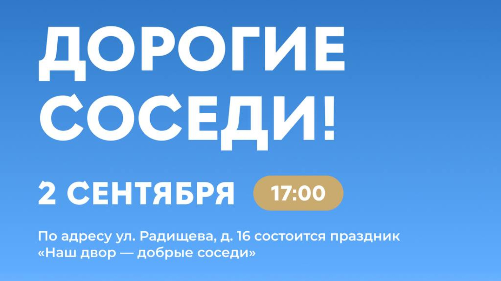 Бүген Радищев урамы, 16 йортта «Безнең ишегалды — яхшы күршеләр» бәйрәме уза. Башлана-17:00.