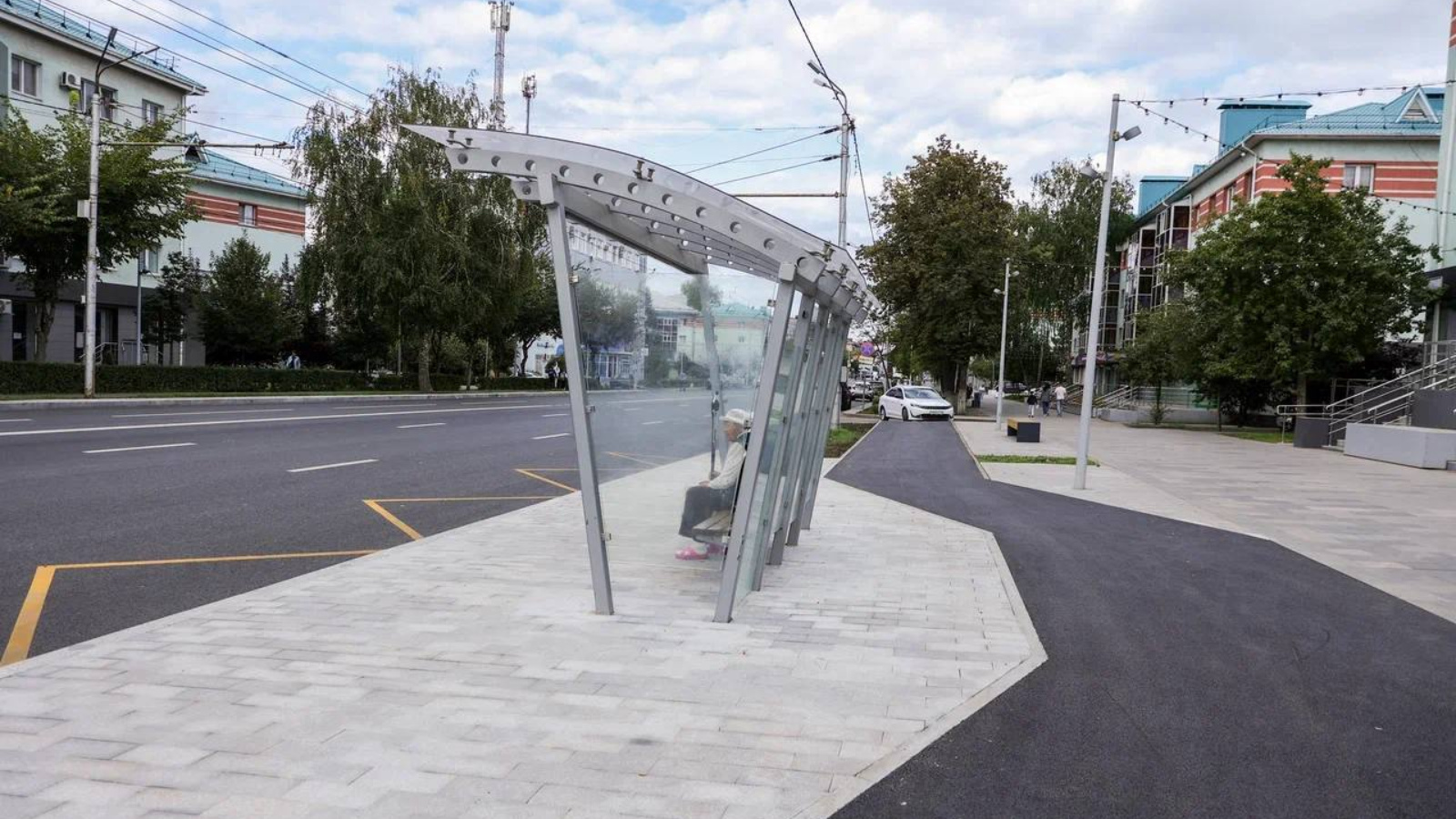 Хәзер схема үзгәртелгән. Тукталышлар утырту зонасына якынрак күчерелгән, ә велоюл павильоннар артыннан уза. Өстәмә рәвештә керү кесәләре демонтажланган, шуның аркасында автобуслар һәм троллейбуслар тротуарга якын килә ала. Бу бигрәк тә аз хәрәкәтләнүче пассажирлар өчен мөһим, аларга транспорттан файдалану җиңелрәк һәм куркынычсызрак була башлады.