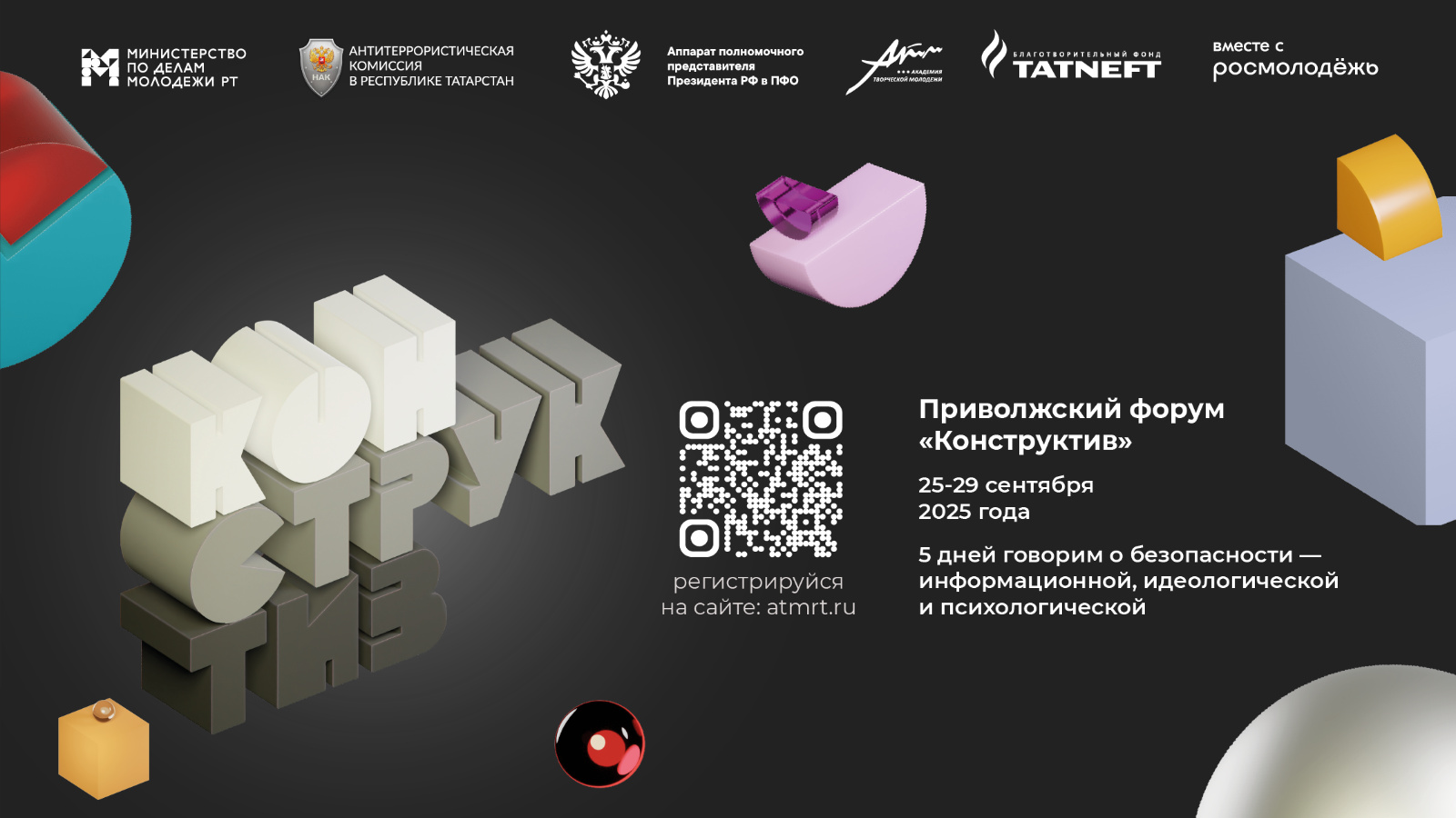Куркынычсызлык һәм тәнкыйди фикерләүне үстерү өлкәсендәге төп яшьләр вакыйгасына теркәлү башланды – яшьләр арасында радикализмны, экстремизмны һәм террорчылык идеологиясен профилактикалау буенча «Конструктив» Идел буе форумы, ул 2025 елның 25-29 сентябрендә Казанда узачак һәм Идел буе федераль округының 14 төбәгеннән вәкилләрне берләштерәчәк.