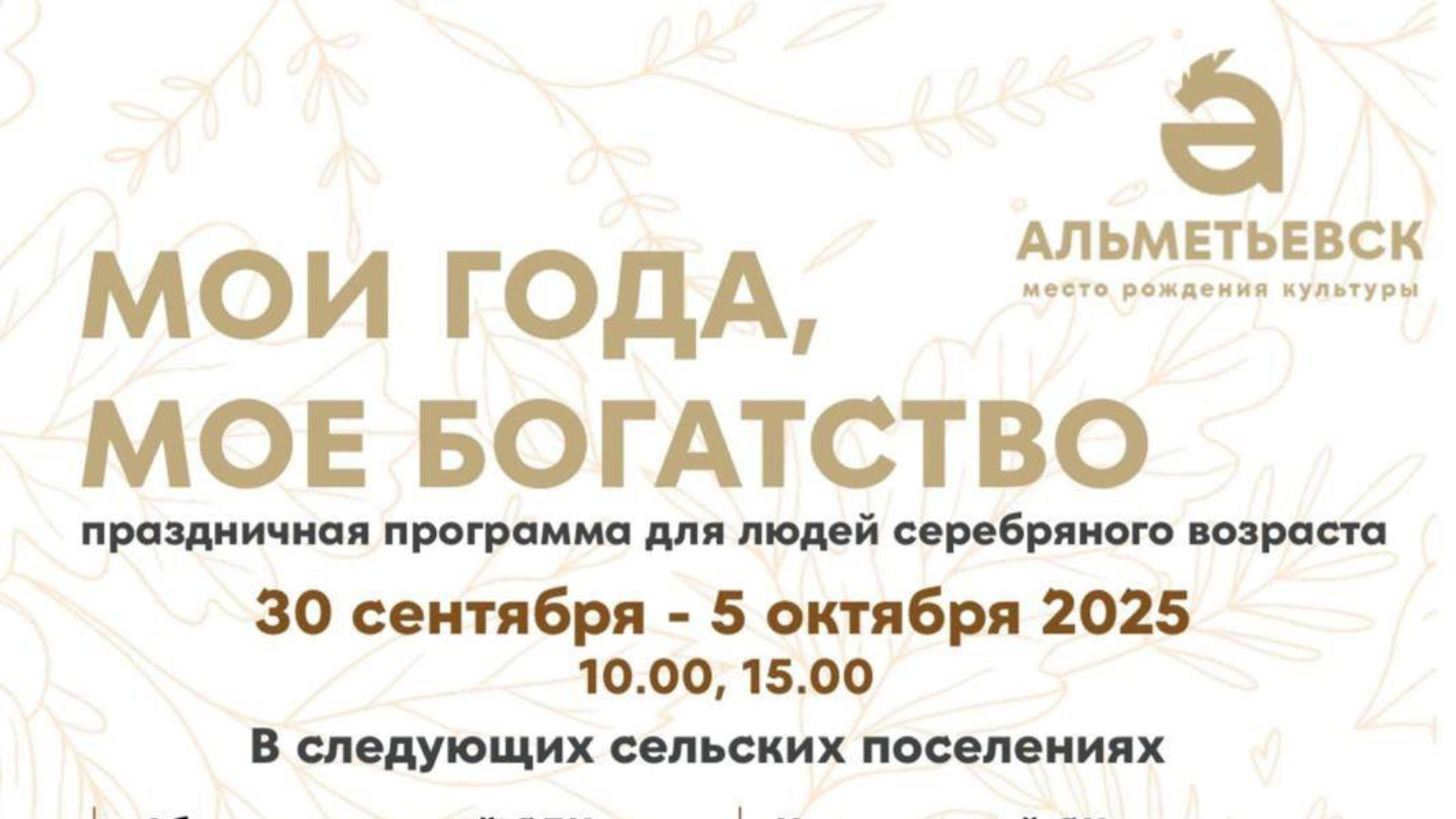 30 сентябрьдән 5 октябрьгә кадәр Әлмәт районында көмеш яшьтәге кешеләр өчен бәйрәм чаралары узачак. 36 авыл җирлегендә Халыкара өлкәннәр көне алдыннан программалар әзерләнгән.