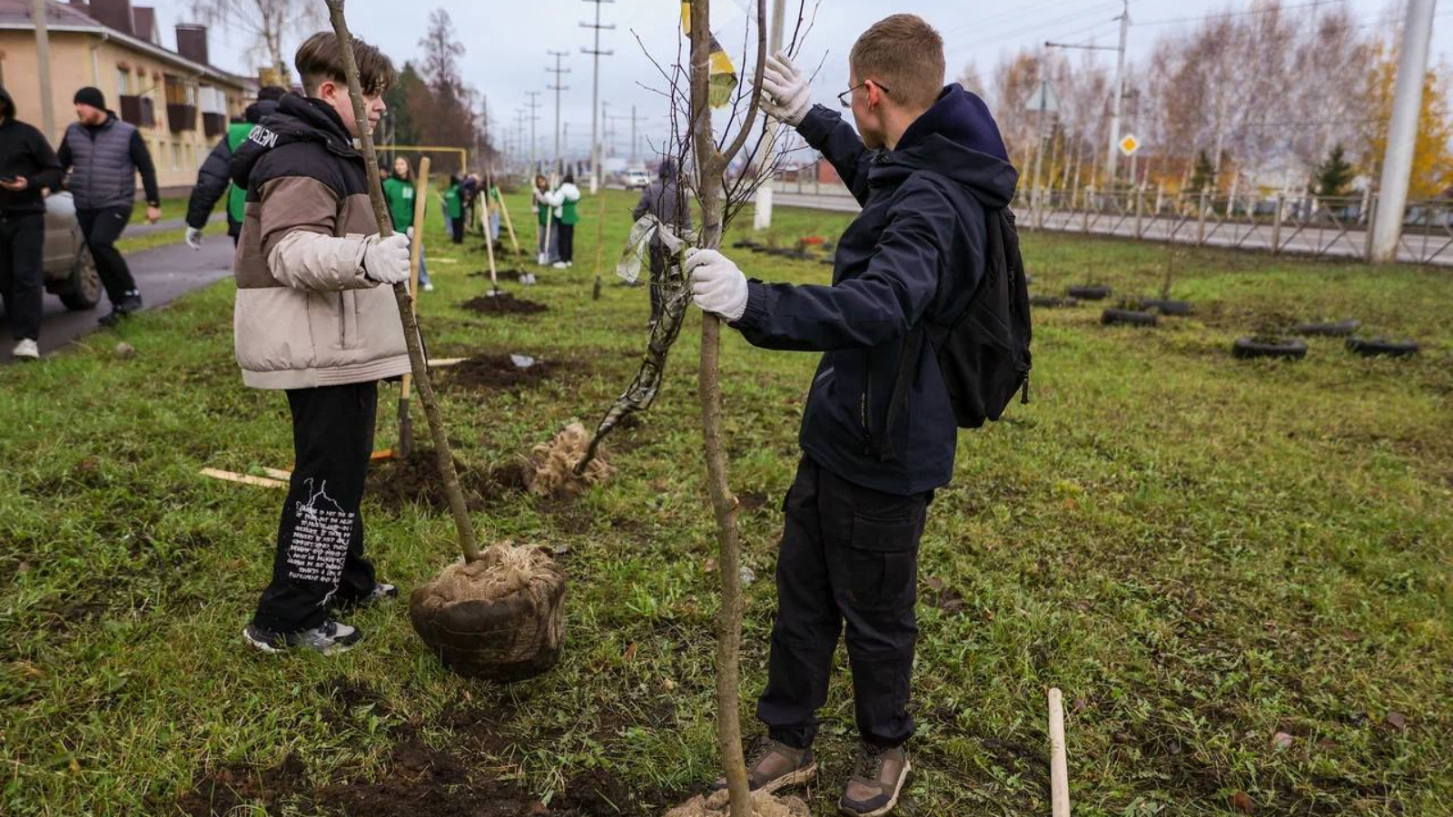 Бүген Казан инновацион университеты һәм Әлмәт политехник техникумы студентлары РТС микрорайонында Геофизическая урамында агач утыртуда катнаштылар.