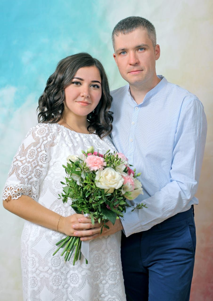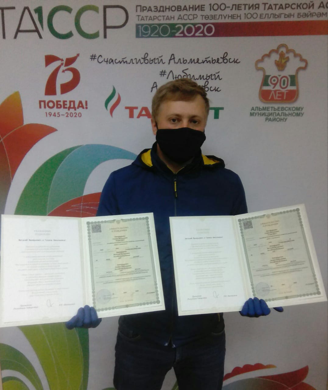 2020 елның беренче аенда Әлмәт муниципаль районы башкарма комитеты ГХАТ Идарәсендә 44 гаилә теркәлгән. Фотода Әлмәт шәһәренең яңа гаиләсе - Алексей һәм Светлана Гориннар, алар никахларын 2020 елның 31 гыйнварында теркәделәр.